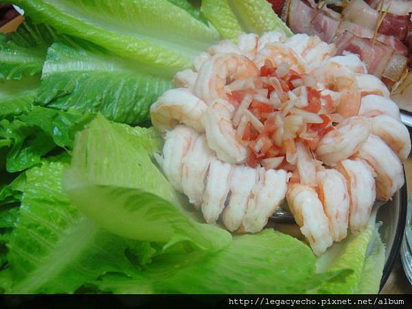 沙沙醬鮮蝦盅佐羅曼心,沙沙醬的芫荽另外放,因為有的人不敢吃。