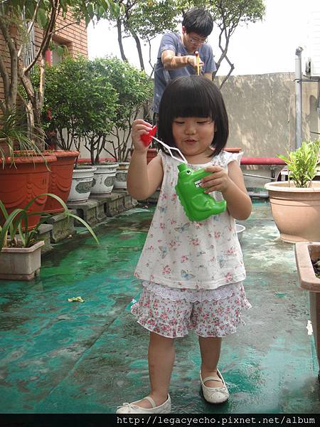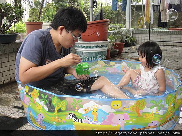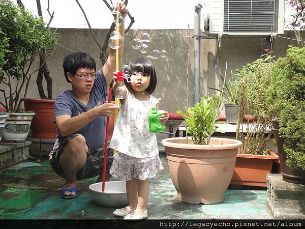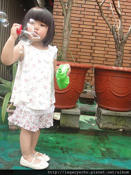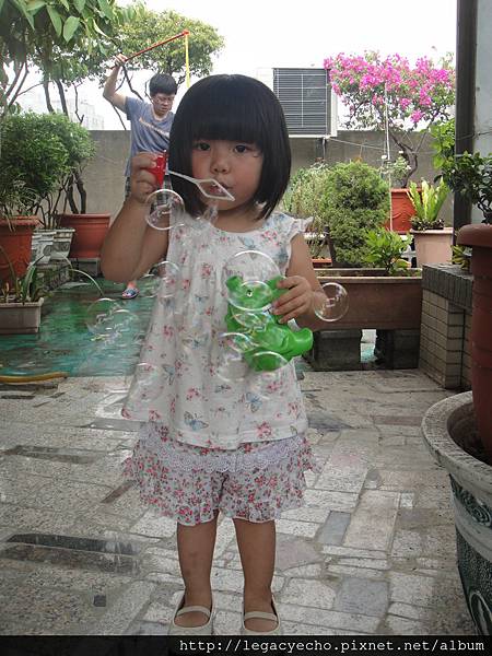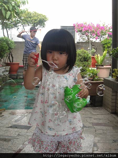 鳳凰颱風來之前,玩吹泡泡玩得太認真,亮亮感冒了!