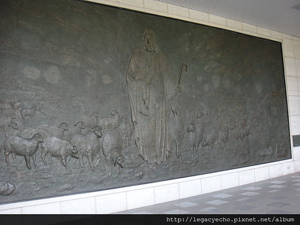 在第二教學大樓的入口有一面牆,牆面雕刻了主耶穌看顧六十六隻小羊,最近美術系的同學塑陶燒製了色彩豐富的迷你羊,一說要湊足一百隻羊。