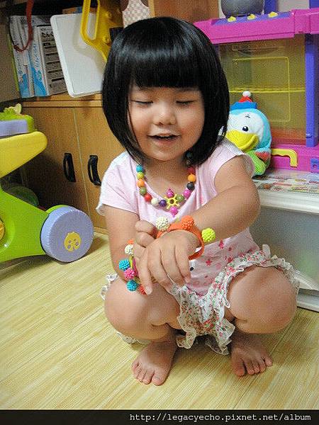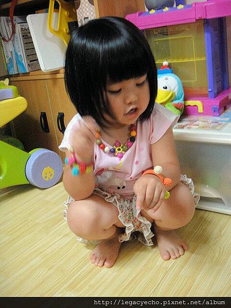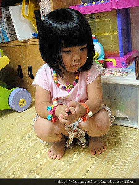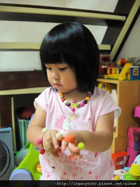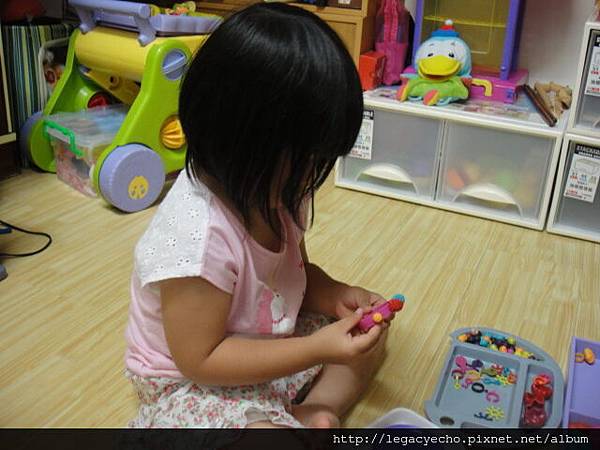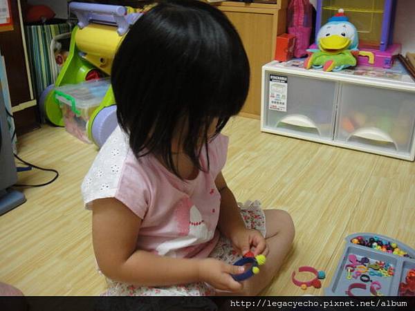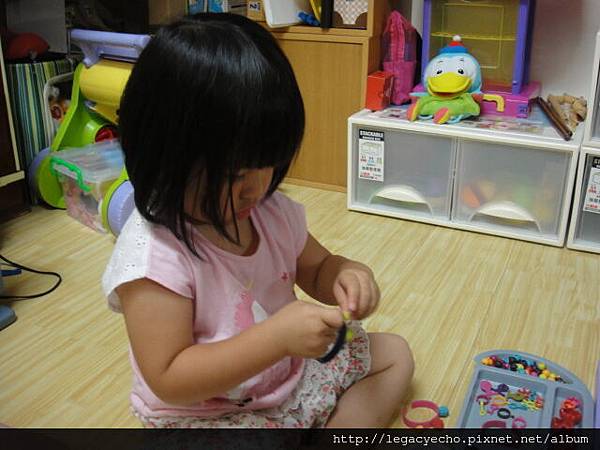 上了幼兒園的亮亮,在幼兒園裡最喜歡的工作大概就是串珠珠了。