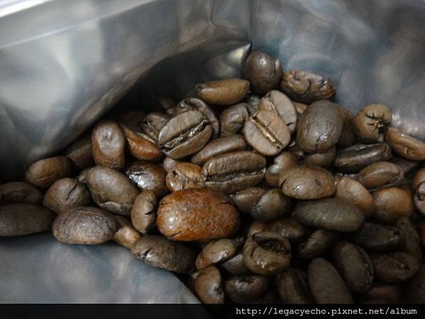 兩種豆子,由色澤感受烘焙的程度略有差別。眼力沒那麼好,不知道配比的實際狀況。
