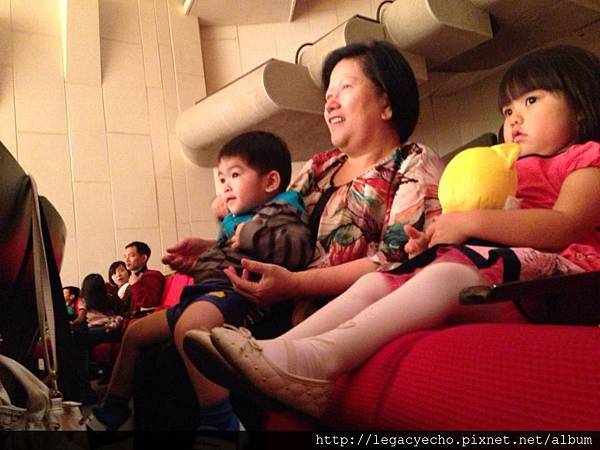 翋祶雖然才一歲四個月,和亮亮姊姊,坐在位置上,認真又開心的看演出。