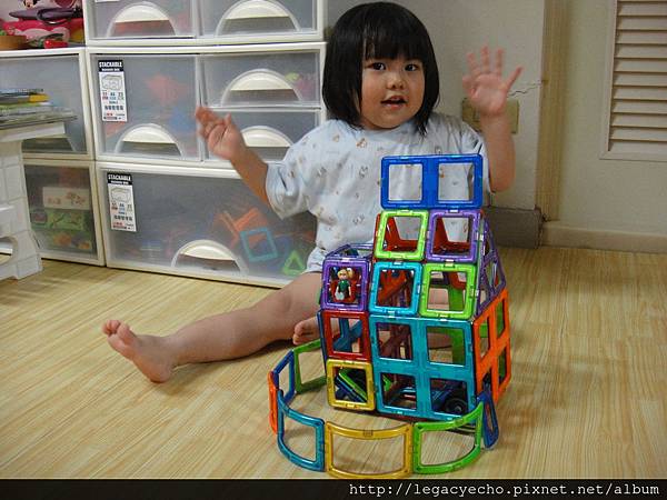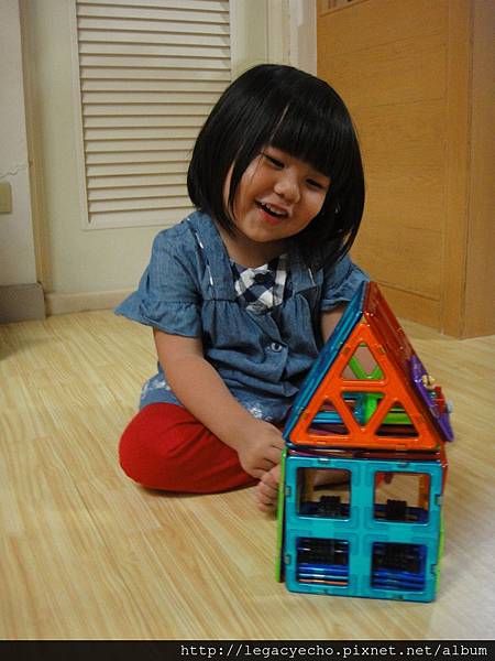 今天晚上,亮媽媽正忙著,讓亮亮自己玩積木,十幾分鐘後,突然聽到亮亮說:「我的房子蓋好了!請幫我拍一張照片。」