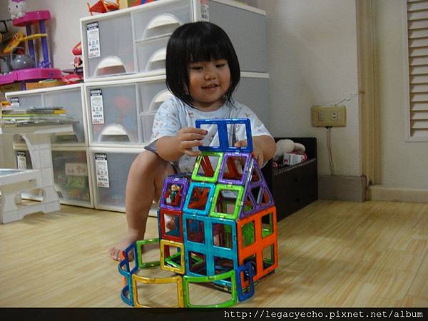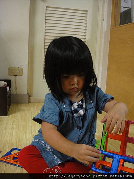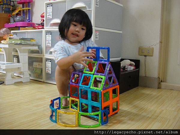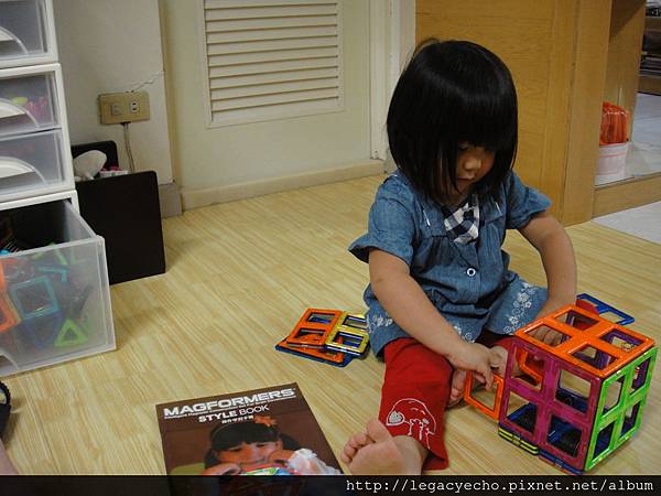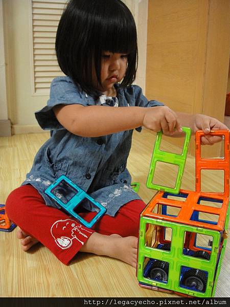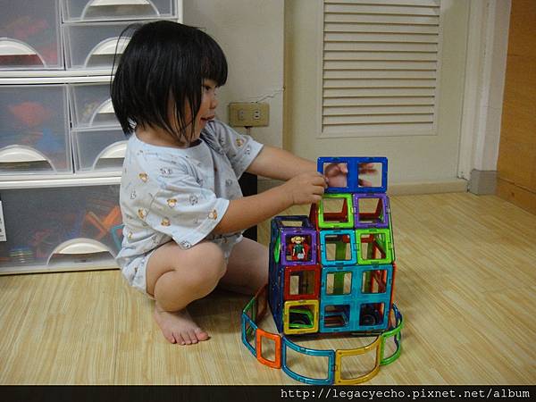 第一個星期,亮亮借用積木,大概就是排一些平面的圖案。