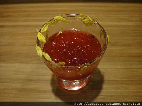 新鮮洛神花以流水洗滌含蘊,以砂糖揉捻攪和,手感的溫度讓洛神花飲了糖蜜卻依然冰涼爽脆。