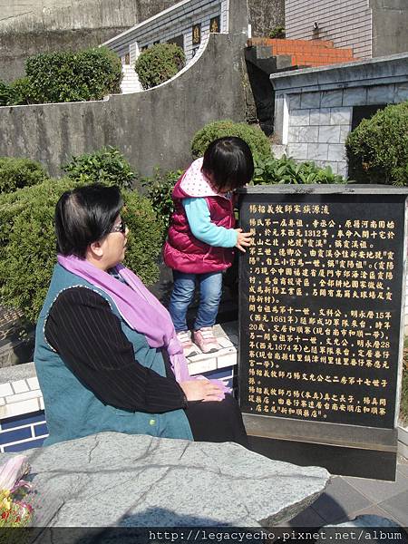 在福音山墓園,亮亮堅持我唸阿祖在石碑上刻印的家族源流給她聽。