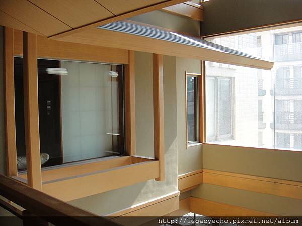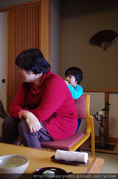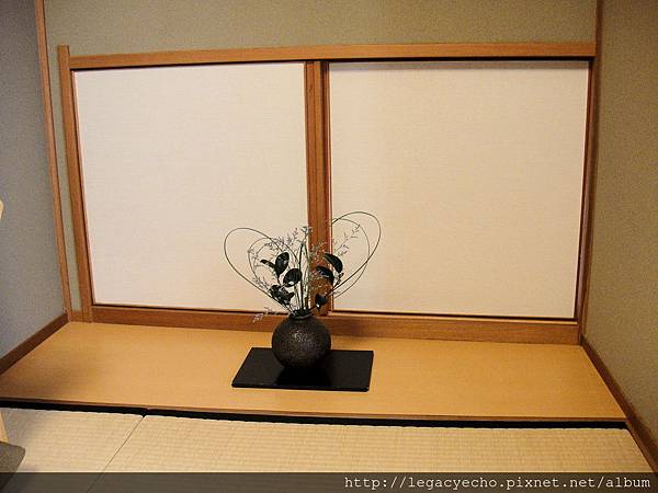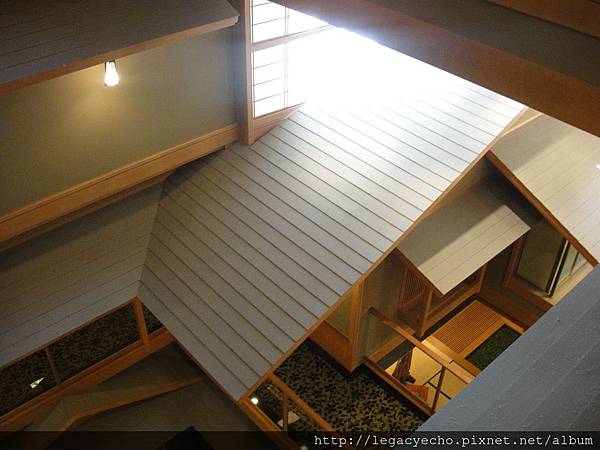 這是一個面向中庭的房間,沒有對外的景觀窗,倒是可以望見中庭因為湯屋、餐廳等公共空間而架設的日式屋頂,有點像是江戶櫛比鱗次的街市,難怪亮亮說好像又回到小時候住的日本了。