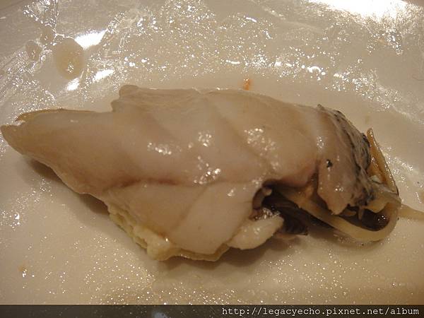 永結同心,芙蓉石斑卷,石斑魚若不夠大還不容易做這道菜,將石斑魚細心片下魚肉,切成適當大小捲上香菇,置魚蒸蛋的蛋汁上,在盤上排出魚的形狀清蒸,再淋上蔥油汁。