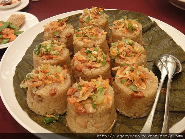 招財進寶來,台南最流行的米糕,麻油雞蒸糯米上飾以櫻花蝦。