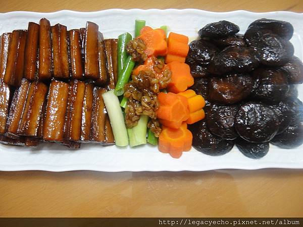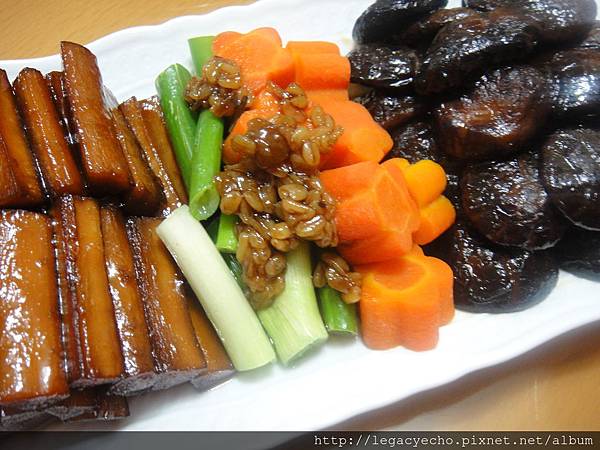 煮了鈕扣香菇、有機紅蘿蔔及牛蒡,用佃煮的醬汁燜了幾段正月蔥。