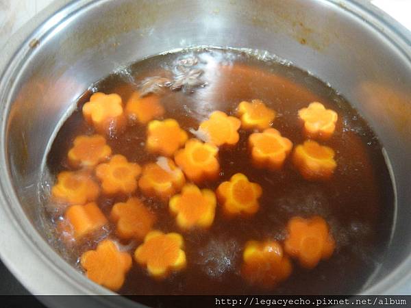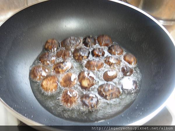 一開始先煮紅蘿蔔,煮紅蘿蔔的時間,一邊炸香菇,香菇炸過再滷才香。