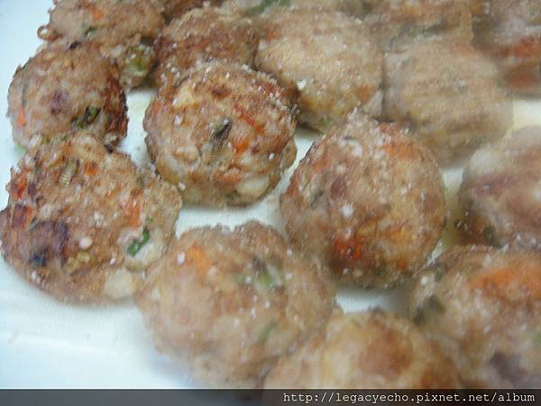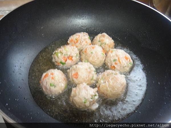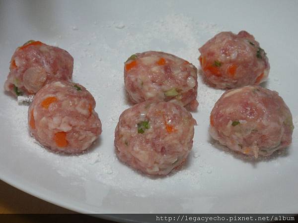 荸薺、紅蘿蔔、青蔥、豬絞肉(先打出黏性)拌勻,做成圓球狀,再油炸。