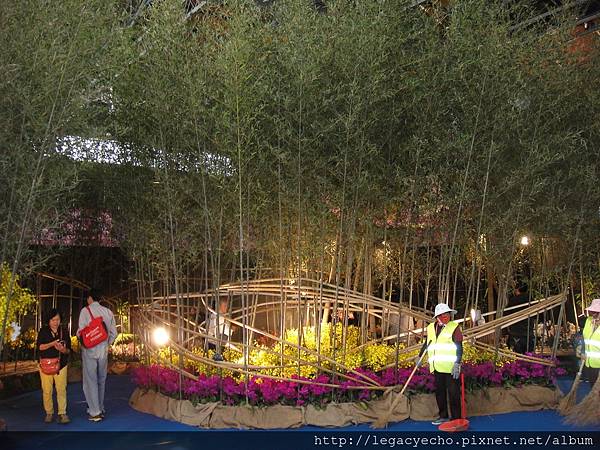 今年主題館的大型作品,用了許多綠竹作為佈展的背景,走在其間,彷彿穿梭竹林。