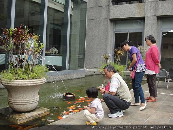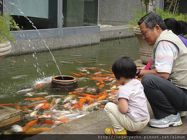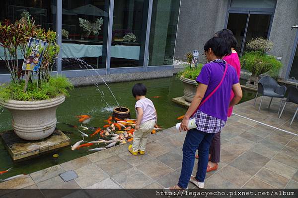 在江南會館盧卡西餐廳用餐後,帶亮亮餵錦鯉,亮亮開心得驚聲尖叫,因為錦鯉跟著她移動,甚至躍出水面。