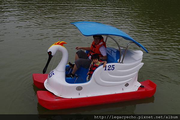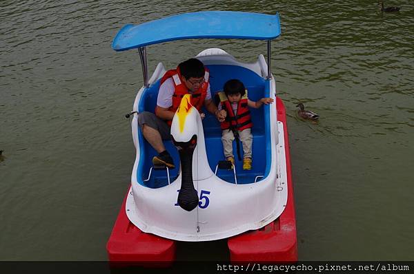 跨過水壩,在水庫的另一岸,還有腳踏鴨子船。這裡的鴨子船有嚴格遵守穿救生衣的規定,對於水上遊憩安全有一定的要求。