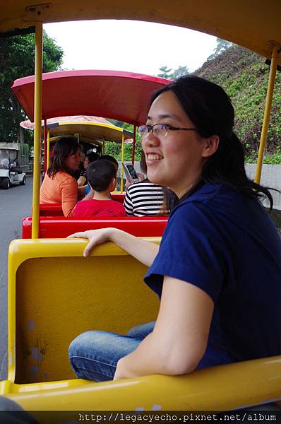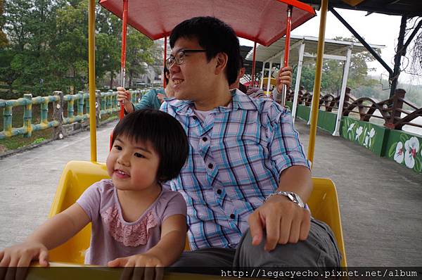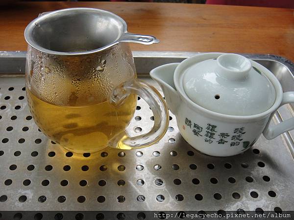 趁著Jay帶亮亮去壩頂搭遊園車,我和大大及妹妹到桃花心木樹下泡茶。