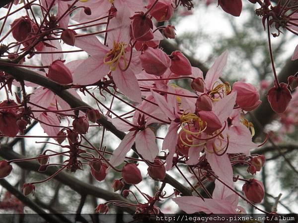 原本有些氣喘發作的我,在「桃紅陣雨樹(apple blossom shower tree)」下,恢復精神。