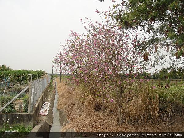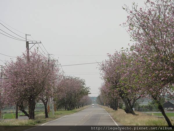 走在羊蹄甲夾道的鄉間小路,停車看花。