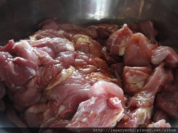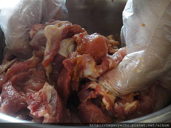 將豬肉調味醃製後,置於冰箱冷藏一段時間入味。