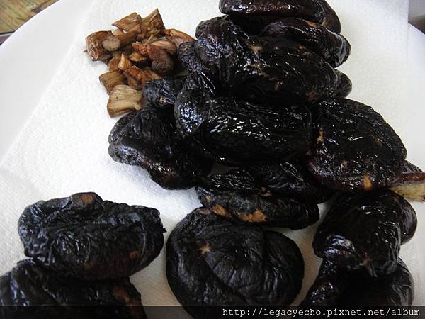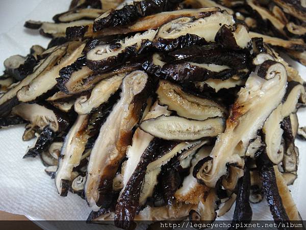 泡過水的香菇,擰乾水分,用少許油炸,炸過再煮,香菇的香氣特別香,炸好的香菇去蒂頭切絲備用。