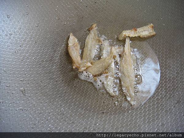 接著用炸過香菇剩下的油,讓扁魚過油一下備用。