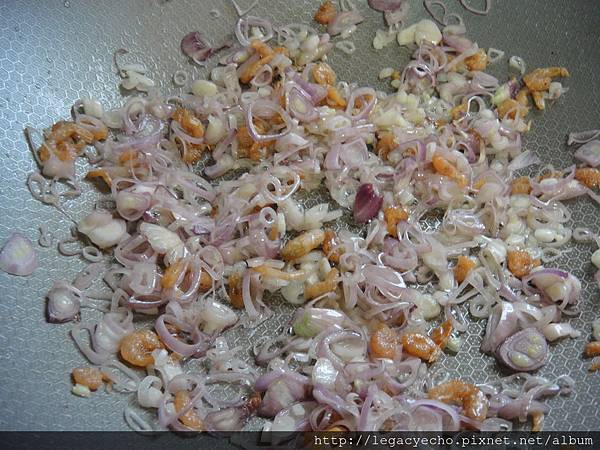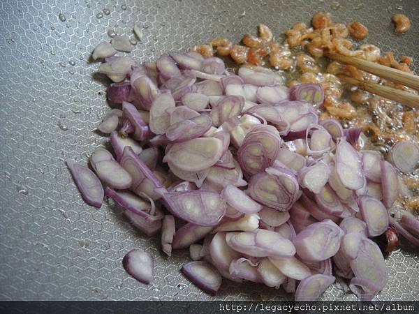 蝦米與紅蔥頭炒開,香氣四溢。