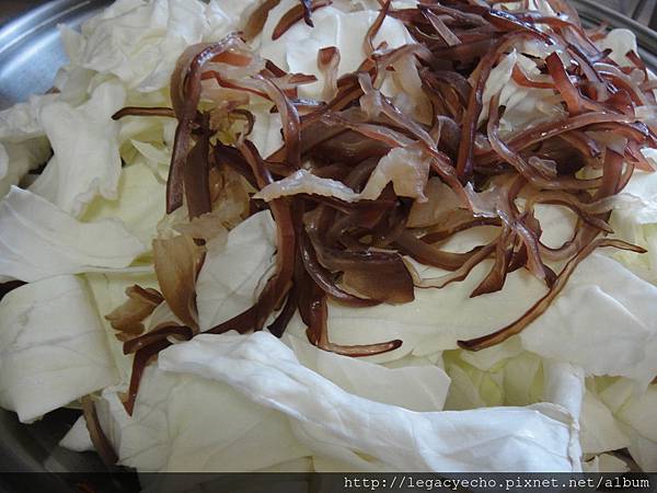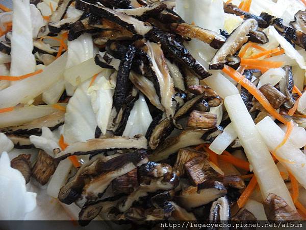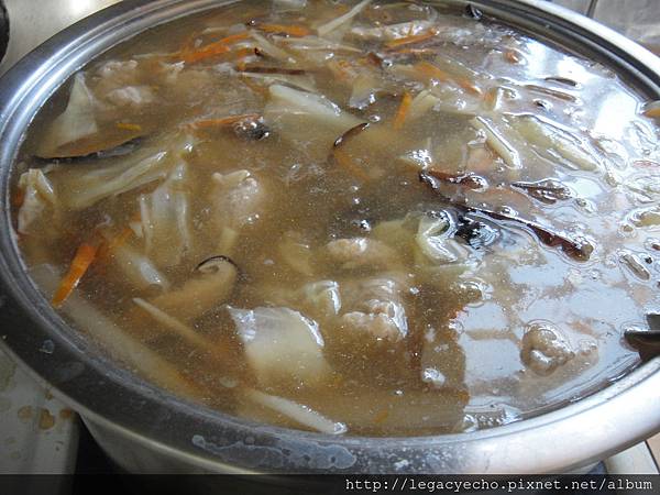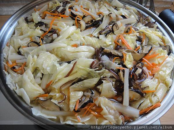 接著陸續加入白蘿蔔、高麗菜、香菇、木耳、金針等食材。