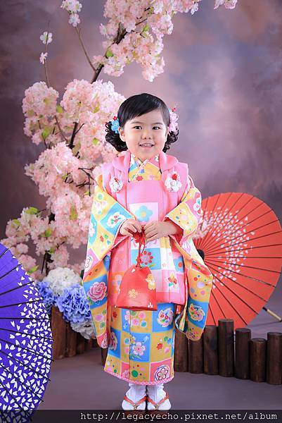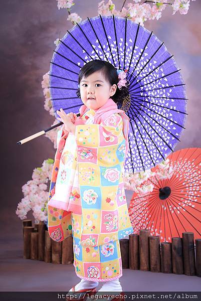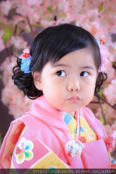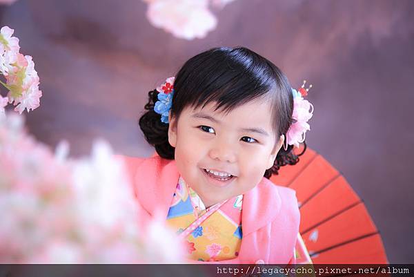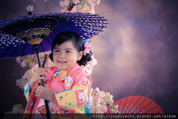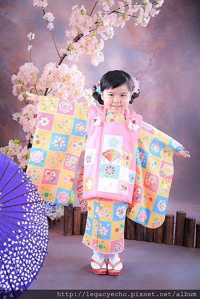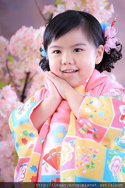 四歲生日,亮亮拍了這一組穿和服的照片,顯得婉約動人。