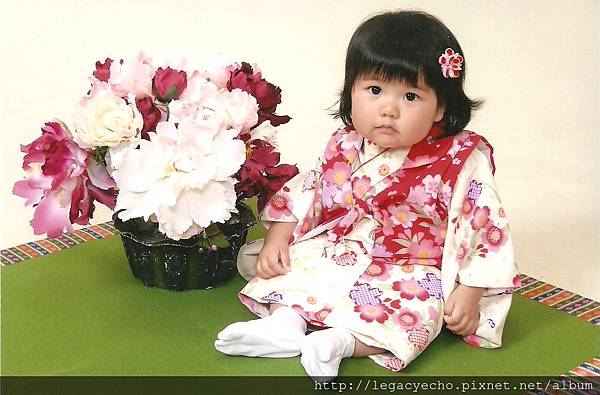 下面這一張照片就是亮亮滿周歲穿和服的模樣。