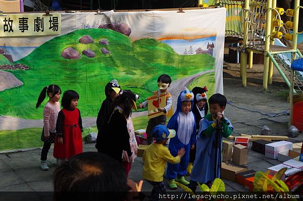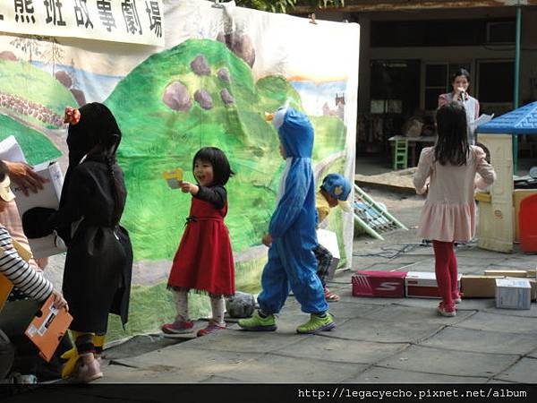這一次彩虹熊班級演出三段故事,亮亮這一組表演的是城堡國與企鵝國打仗與和好的故事。