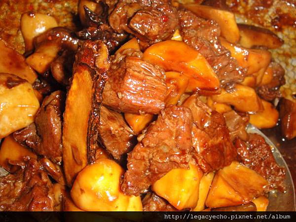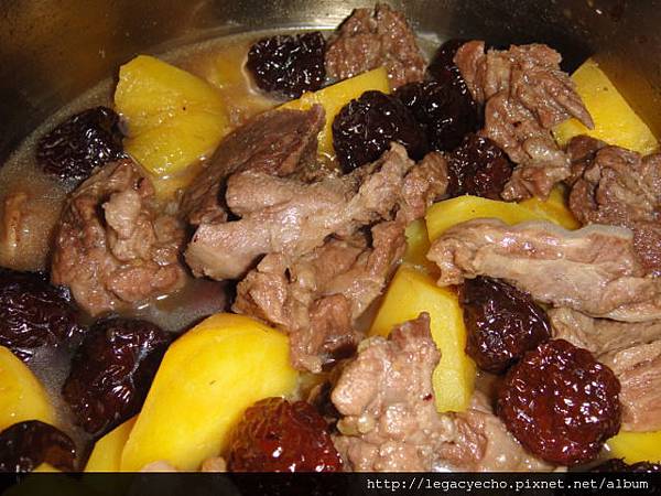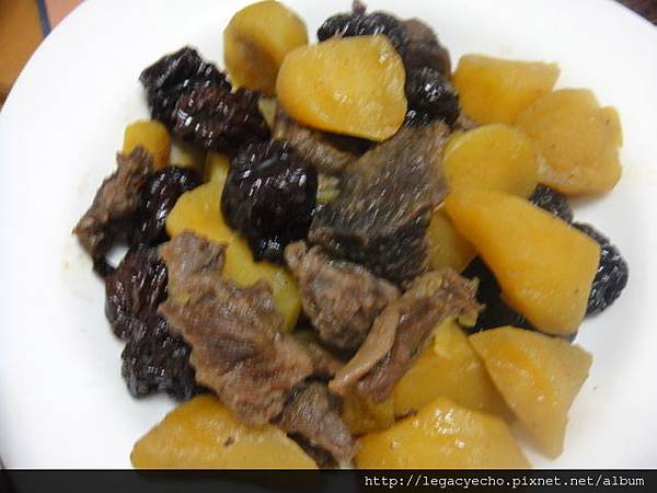取部分牛肉及湯汁,加入番薯及公賣局的紅露黑棗燉煮,番薯及牛肉都有紅露黑棗的蜜糖香,番薯的口感也變得特別有Q勁。