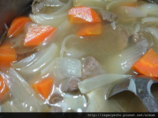 原來基礎的牛肉湯,將紅蘿蔔及洋蔥切塊即可,簡單吧!