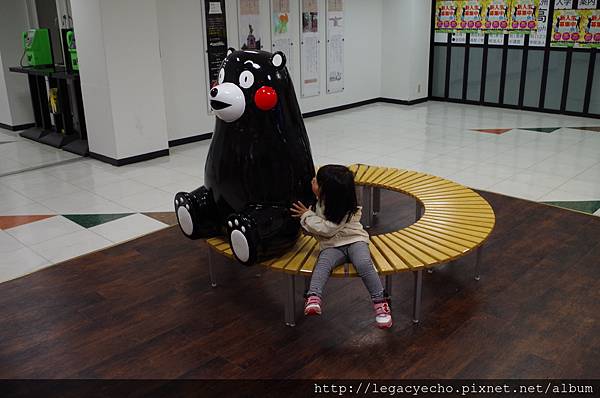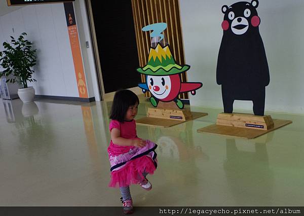 飛機抵達熊本機場,熊本熊部長又站在出口歡迎大家來熊本。