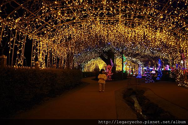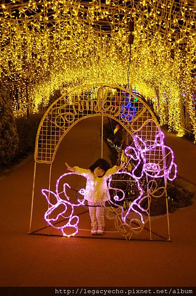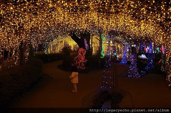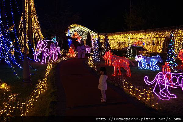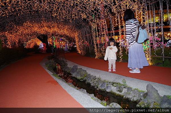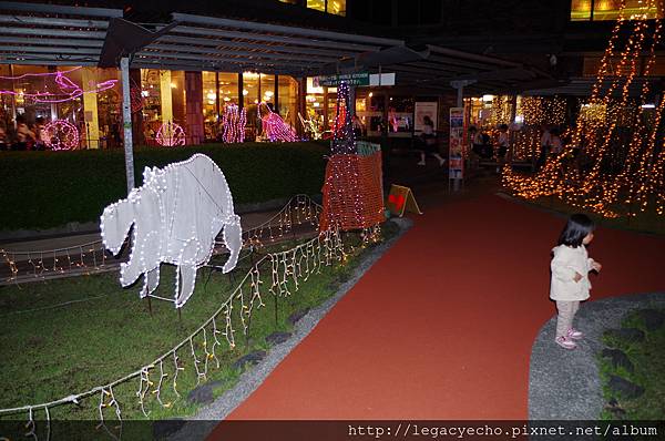 夜間園區布置各種美輪美奐的燈飾,熱鬧非凡。