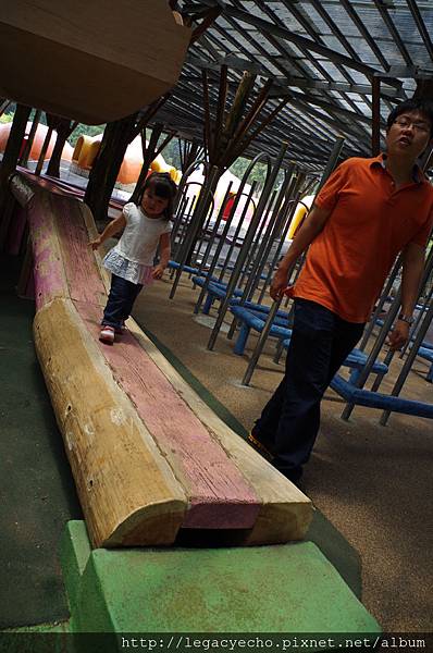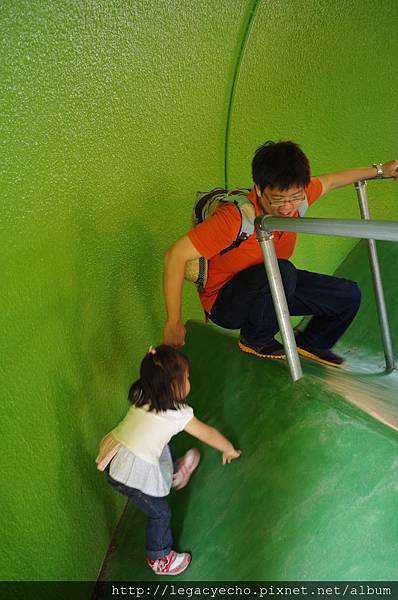 不到三歲的亮亮,在亮爸媽鼓勵下,很有冒險精神。