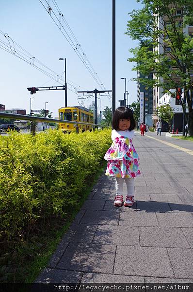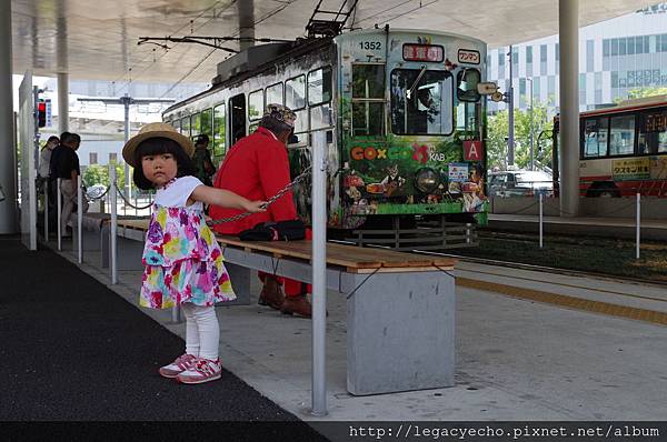 走在熊本市街頭的亮亮,正準備去電車站搭電車去參觀熊本城。