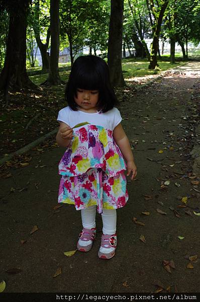 撿拾園區內的樹葉似乎是亮亮喜愛的遊戲,亮亮愛觀察各種樹葉的不同紋理。