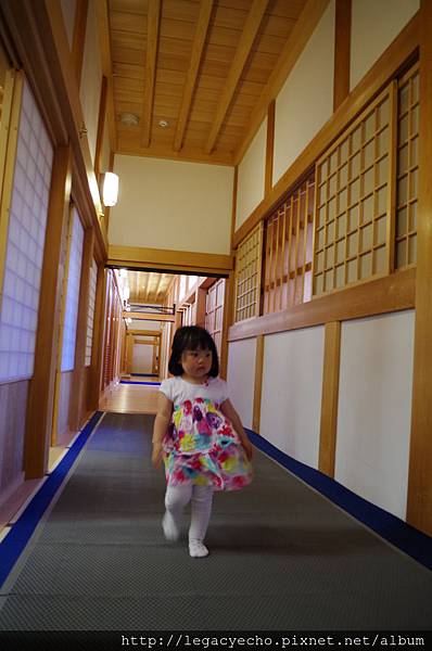 在簷廊上,有時疾步,有時徐走,亮亮彷彿飾演著帶來好運的座敷童子。