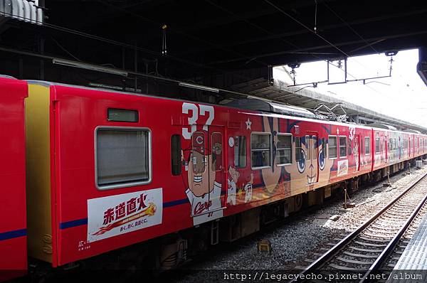 由大阪往廣島的車廂畫滿了赤道直火棒球隊的畫像,真是熱情的啦啦隊。
