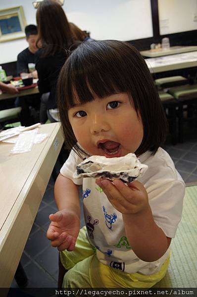 亮亮在宮島體驗了生蚵及炙烤蚵兩種不同吃法的美味。