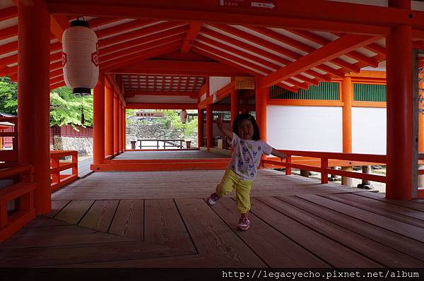 除了現在亮亮靠著迴欄站立處分為右樂房,左樂房外,後方另有表演能劇的能舞台。