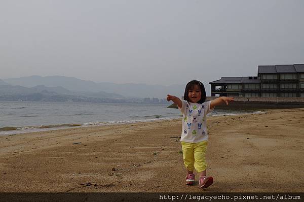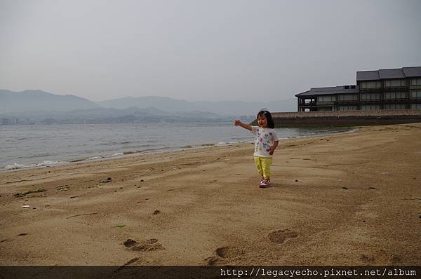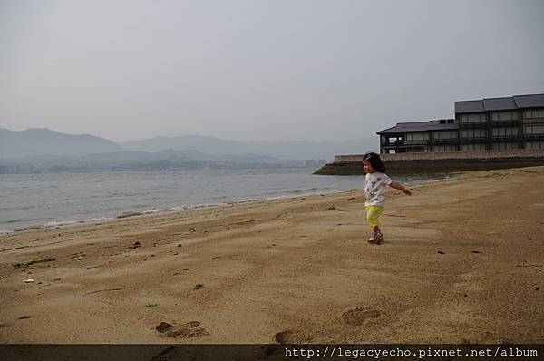 沙灘上清晰的腳印,留下亮亮快樂奔馳跳躍的身影。