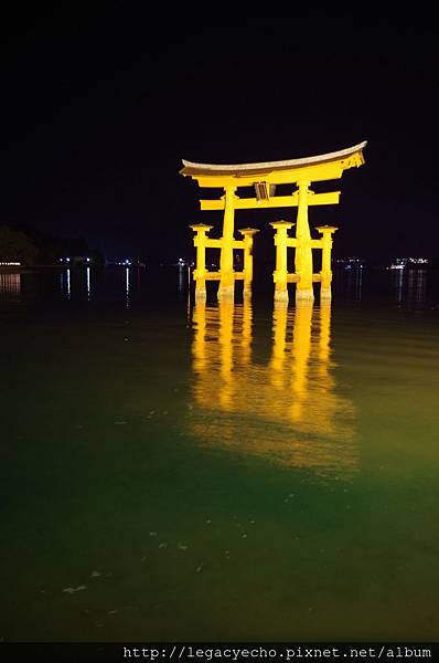 滿潮時,可以看到大鳥居像是浮在海上的雄姿,特別是從嚴島神社伸出的舞台---火燒前看大鳥居更是美麗。