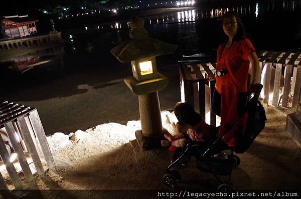 無論是宮島的白天或黑夜,亮亮都是幸福的旅行家。